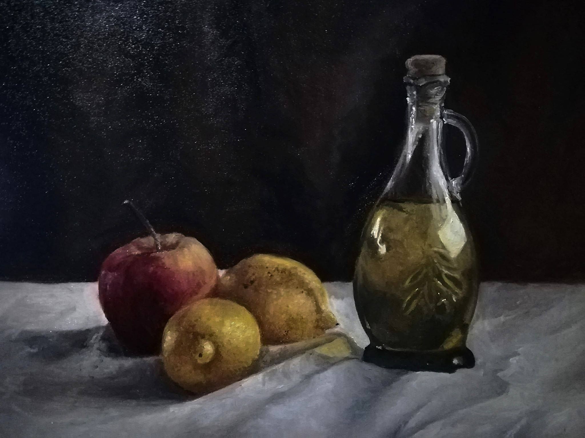 Martwa z jabłkiem i cytrynami – olej na płótnie 50×70