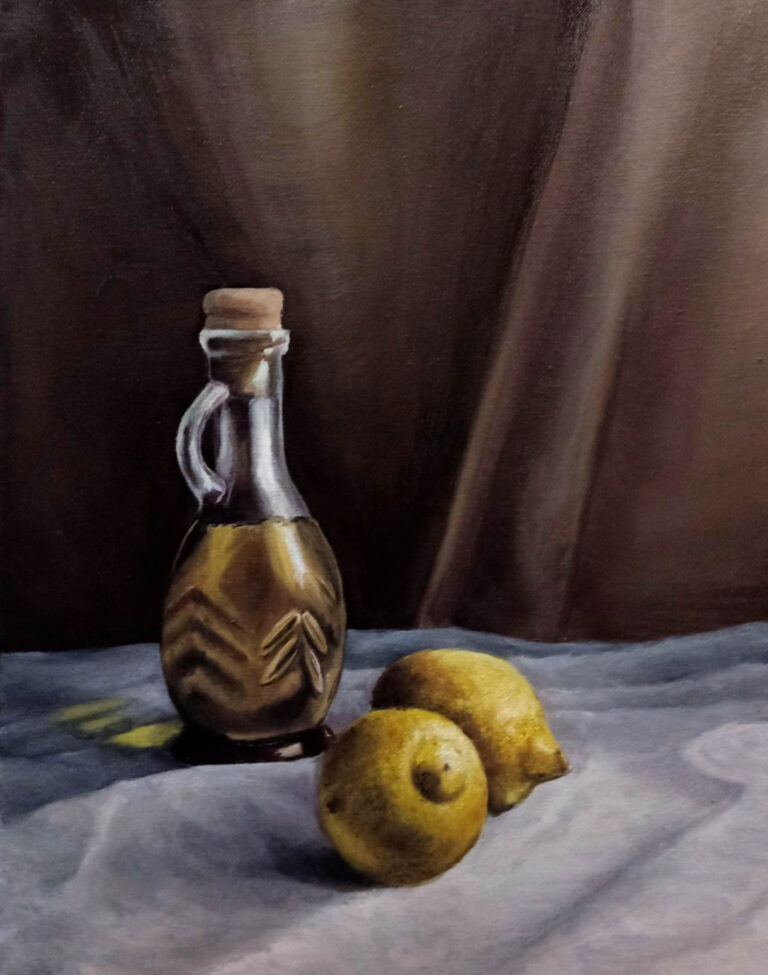 Oliwa z cytrynami, martwa natura – olej na płótnie 60×40 cm